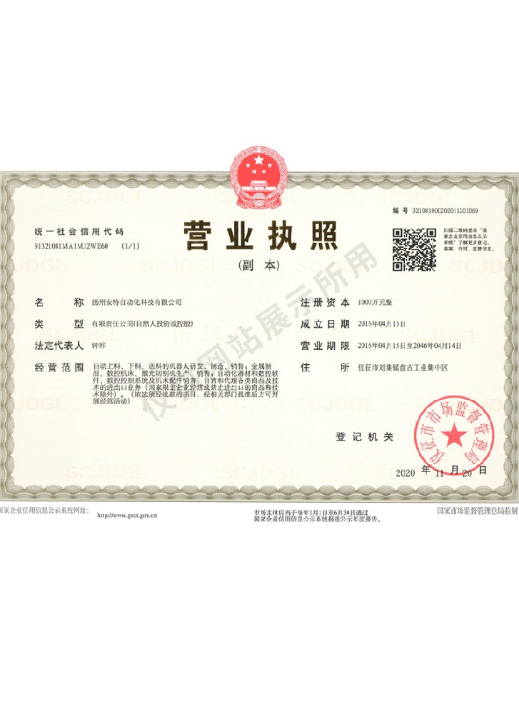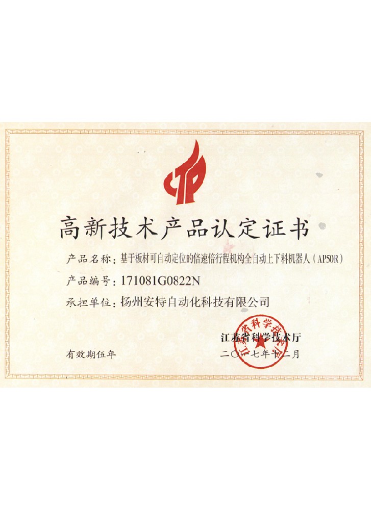 扬州安特自动化科技有限公司是一直致力于研发、生产、销售钣金自动化设备及配套产品。公司汇集了出色的技术与管理人员,秉着精益求精、臻于至善的方针,凭借振奋的团队精神和锐意求新的开拓精神,灵活高效的运行机制,使得公司不断发展壮大。公司注重自主创新,一方面加强自身研发能力的提升,另一方面加强与北京理工大学、同济大学、扬州大学等高校合作,成功研发并生产板材加工应用领域钣金机器人、激光自动化生产柔性线、冲压生产线、剪切分选线、存储料库以及非标自动化生产线及配套设备,努力满足客户个性化定制需求,更加快速、便捷地为客户服务。