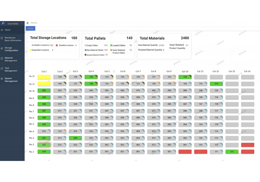 As the management software of AMCW multi-column sheet metal storage system, WMS (Warehouse Management System)software contains the following modules: